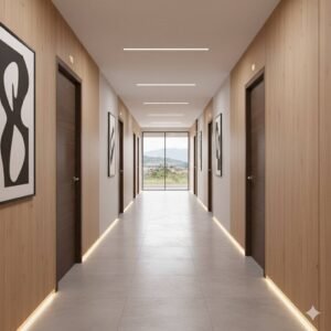 Acabados premium: pisos de porcelanato, mesones de cuarzo y detalles de lujo